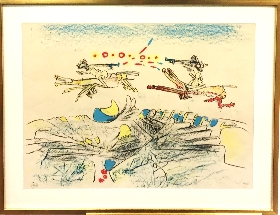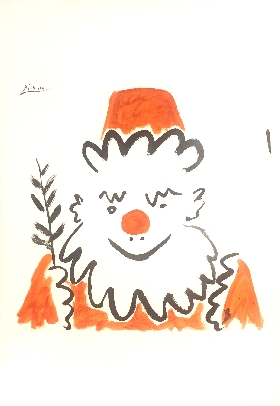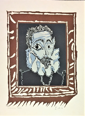 Färglito efter P. Picasso, litograferad an Henri Deschamps. Sign. i trycket. Lyxupplagan 200 ex. på japanpapper. 68x50. Tryckt hos Mourlot. Prov. Sture Andersson, Arne Sundberg. Kaptensgården. Borstahusen. Ej ram.