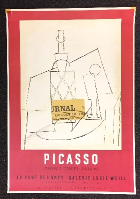 " Picasso Papier-Dessins " Färgaffsich PabloPicasso 1956. 1000 ex. 66x 46 cm. Tryckt hos Mourlot. Publ. av Galerie Lucie Weill, Paris. 66,5x45,5 cm. Liten kantreva upptill. Små tejprester. Prov. Sture Andersson, Arne Sundberg, Borstahusen. Ej ram.