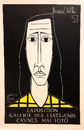 " Exposition Galerie des Etats Vnis " Cannes mai 1956. Poster Bernard Buffet. Gravé par Figas. 83x54 cm. Prov. Sture Andersson och Arne Sundberg Kaptensgården. Borstahusen. Smärre hanteringsveck i marg. Ej ram.