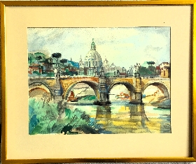 Akvarell av Primus Mortimer Pettersson. Sign. 31x40 cm.