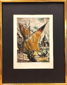 " Venezia 1932 gravyr " Färggravyr av Jules Schyl. Sign. 20x14,5 cm.