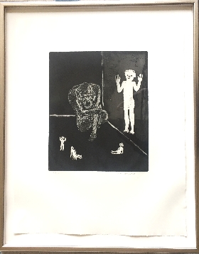 " Barn och gorilla " Etsning av Lena Cronqvist. Sign. 75 ex. 34x28 cm.