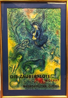 "Trollflöjten. " Färgaffisch Marc Chagall , litograferad av Charles Sorlier 1967. 3000ex. 100x66 cm. Tryckt hos Mourlot. Litt. les affiches de Chagall sidan 106-107