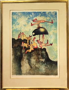 Färgetsning av Roberto Matta. Sign.100 ex. 20,5x13 cm.