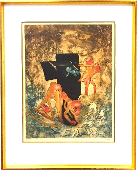 " La Danse de la Mort 1972 " Färgetsning av Roberto Matta. Sign. 100 ex. 49x37,5 cm. Edition Börjesson, Malmö. Ref Sabatier 294.