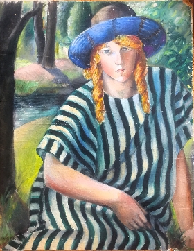 Olja på pannå av Agda Holst. Sign. 1946. 30x24,5 cm.
